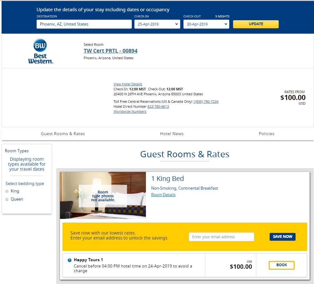 Über den Buchungs-Link können Reservierungen für das Kontingent direkt auf der Best Western Website gebucht werden. Nach Klick auf den Link öffnet sich direkt ein Anfrageformular mit den Buchungsdaten des Kontingents – vgl. folgender Screenshot: