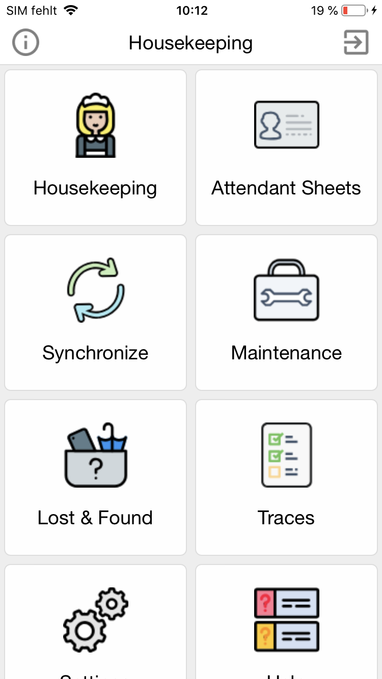 Accessing the housekeeping list can take a very long time to load. After a certain amount of time, the app will assume that there is no internet connection and will terminate the loading procedure and display the respective error message. Activate